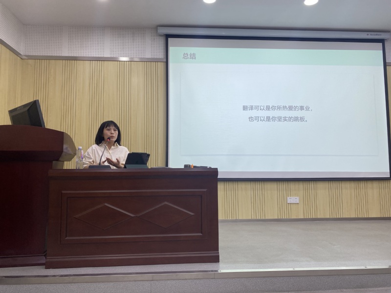 讲座接近尾声时,符老师寄语同学们:“翻译可以是你们所热爱的事业,也可以是你们坚实的跳板!”在热烈的掌声中,此次讲座圆满结束。