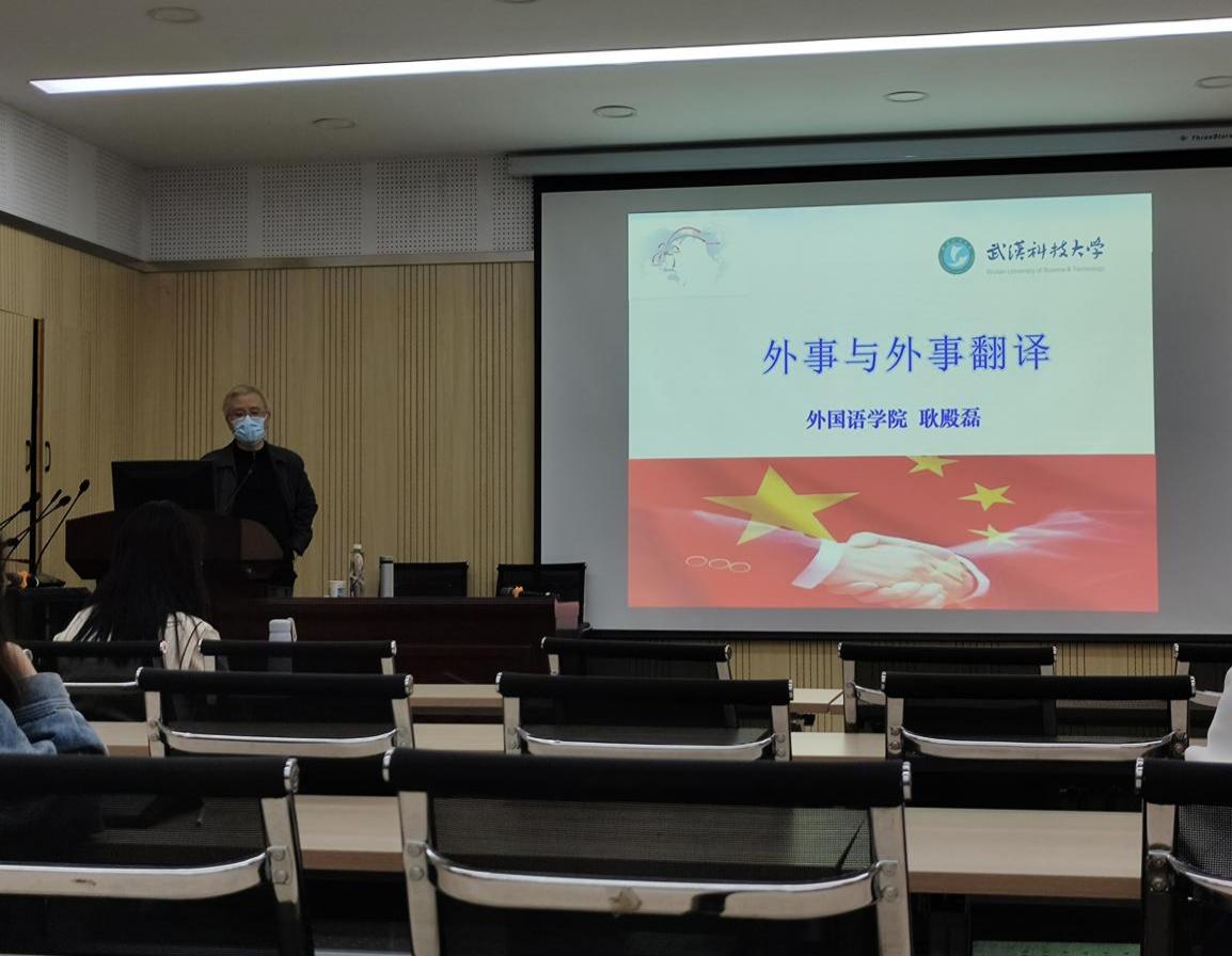 (通讯员詹筱纯 姚刚)11月2日晚,应国产精品久久久精品研究生会邀请,国产精品久久久精品硕士生导师耿殿磊教授为2022级研究生举办了一场主题为外事与外事翻译的学术讲座。耿教授详细讲述了外事概论、外交语言和外事翻译三个方面的内容,期间还分享了自己从事外事工作的经历。整场讲座生动有趣,同学们收获满满。