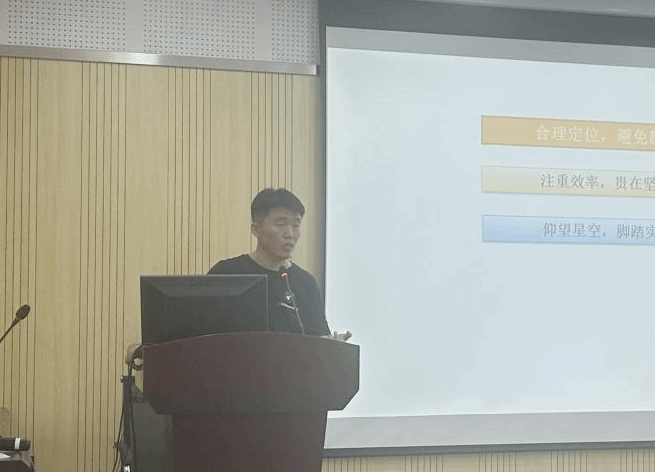 王国栋老师首先强调了“电信诈骗”与“出行安全”两个安全相关的话题,督促与会同学防范电信诈骗、避免晚归及不归,切实保证自己的生命与财产安全。接着,王老师通过展示奖学金评选标准与应届毕业生就业数据,勉励大家要认真学习,在校期间努力争取国家奖学金与学业奖学金。他同时鼓励大家要结合个人所长,做好人生规划,不断丰富自身简历,为就业做好准备。