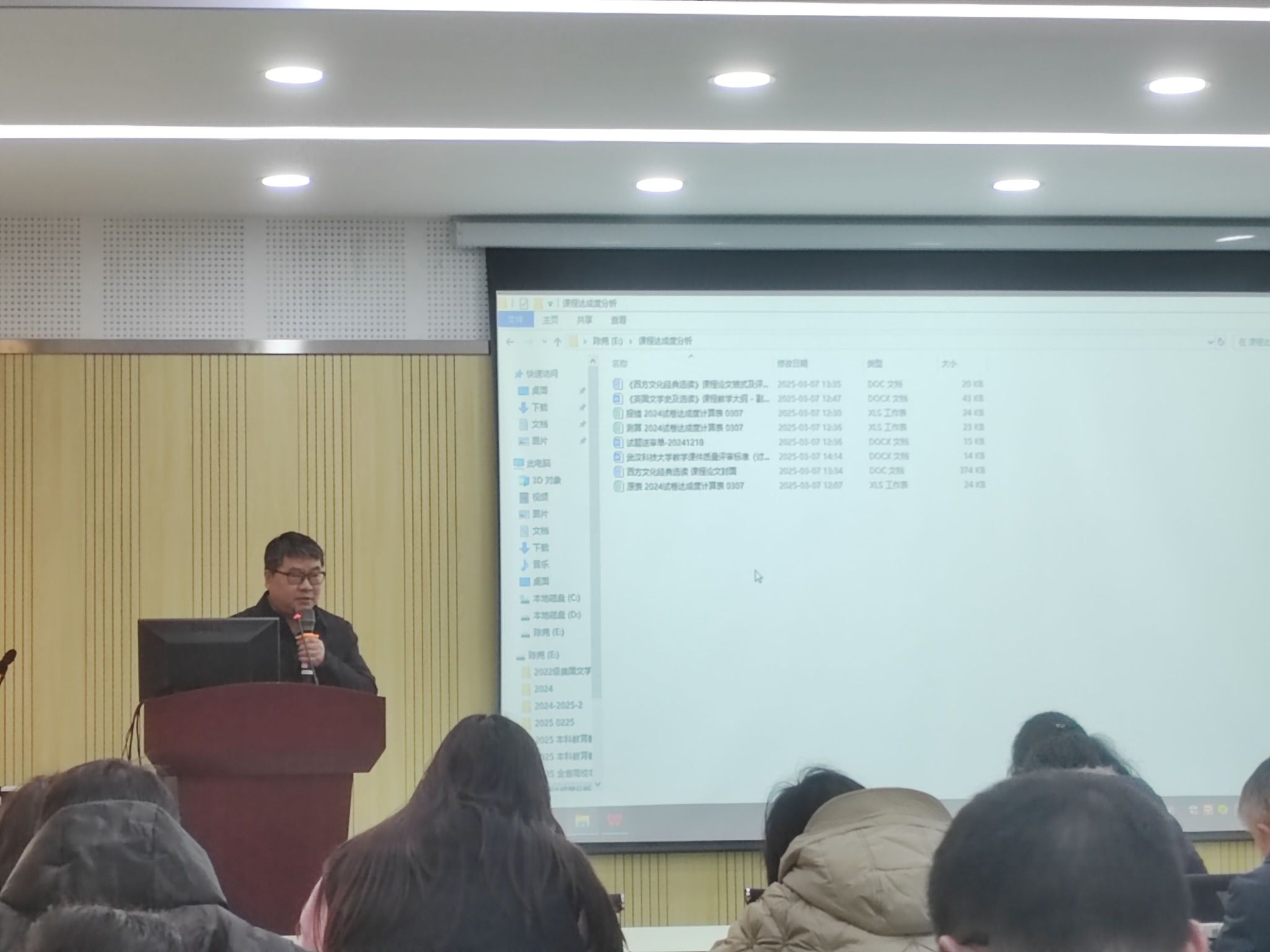 副院长陈尧对本科教育教学审核评估工作进行具体说明。他指出,评估工作事关学校、学院发展,全院教职工必须高度重视,按照学校要求做好每一项工作。他详细解释了《武汉科技大学教学课件质量评审标准(讨论稿)》,并对课程教学大纲制定和试卷达成度分析进行了分析、讲解。