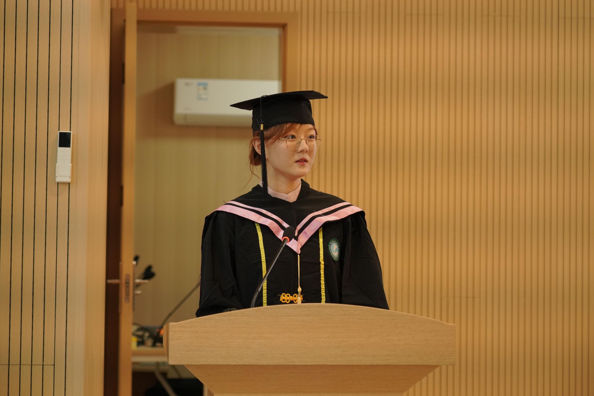 典礼在庄严的国歌声中拉开帷幕。李金云致辞,她回顾了毕业生们在“中外贯通、德业兼修”院训指导下,在竞赛、学术、实践等方面取得的突出成绩,并向毕业生提出三点期望:一要立根铸魂,将个人理想融入国家发展,做中外友好交流的使者;二要精进不止,紧跟语言服务新技术,锻造核心竞争力;三要砥砺心志,传承学校“坚韧不拔、勇承重载”的钢铁品质,勇于面对挑战,坚守人生底线。她以“保持独立、奋发进取、终身成长”十二字与毕业生共勉,祝愿大家前程似锦,常回母校看看。