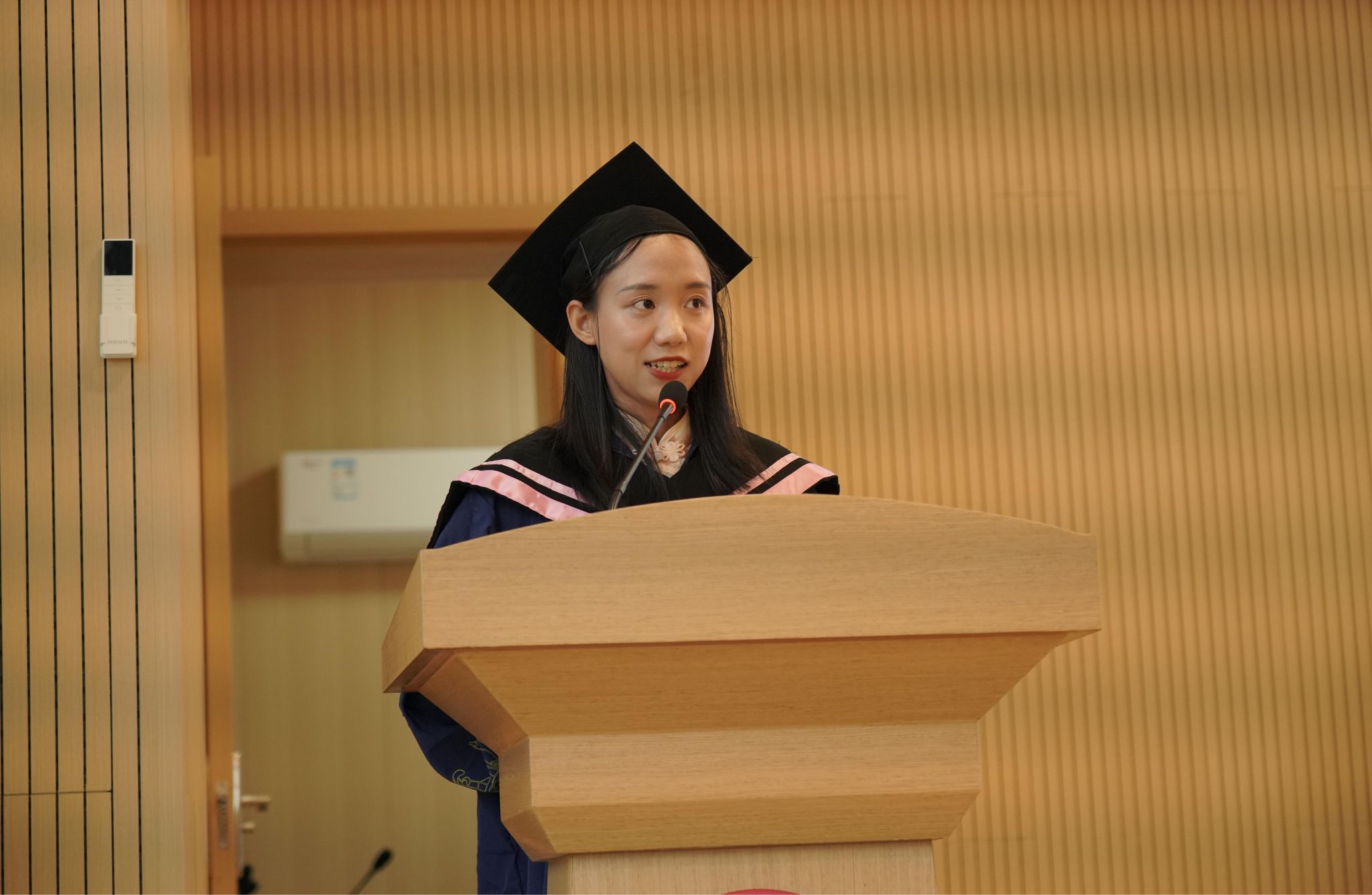 毕业生代表彭嘉俊、牟丽婷依次发言。彭嘉俊从“言、行、桥”三个关键字出发,分享了自己的成长感悟,感恩学院及师长帮助自己理解外语学子的责任,并细数了大学四年的成长,表达了对师生情谊的珍视。牟丽婷回顾了在我校七年的求学时光,从本科到研究生阶段,学院见证了她的成长。她感谢导师在学术研究上的悉心指导以及同伴们在项目中的协作支持,并感恩母校及师长多年来的培养、关怀与教导。