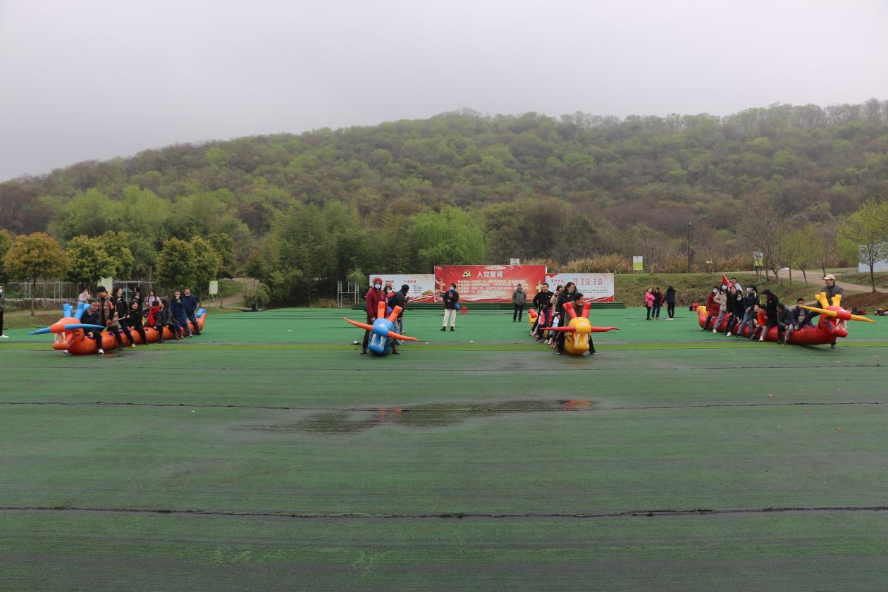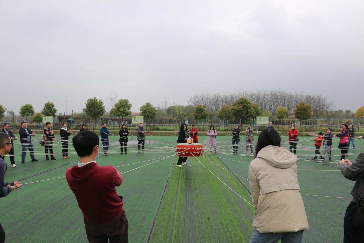 到达目的地后,教职工们参加了旱地龙舟和鼓动人心等团队拓展项目。在园区教练的带领下,教职工们坐骑在充气赛龙舟道具上,大家双手握住赛龙舟的固定把手,在裁判发令后,大家通过团队协调配合带动疯狂赛龙舟游戏道具在跑道上快速行驶,顺利完成了比赛。在鼓动人心的环节中,每个人手拉长绳用鼓面将排球连续颠起,力争创造更多的颠球记录,通过大家的不懈努力,最终完成了既定的目标。