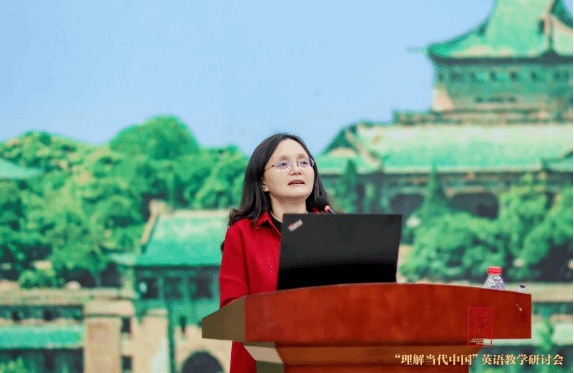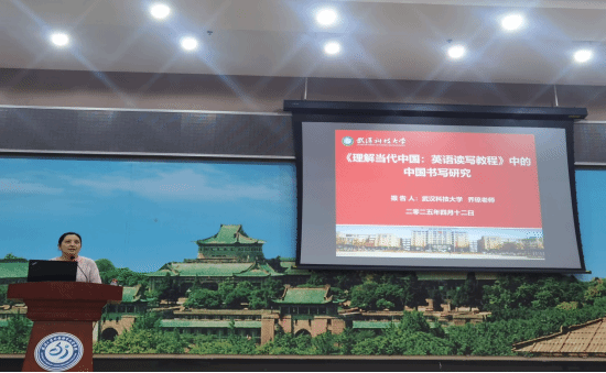 乔琼副教授的发言聚焦《理解当代中国:英语读写教程》中的中国书写研究。她强调《理解当代中国:英语读写教程》不仅帮助学生提升英语读写能力,还让他们能够更好地理解和传播当代中国的故事和智慧,也提升了学生的中国叙事能力,促进其批判性思维与文化自信的协同发展。