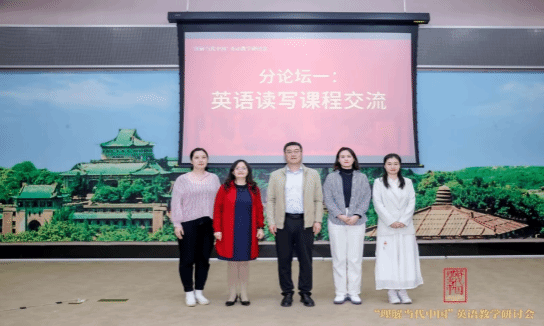 本网讯(通讯员 乔琼)为继续深入学习贯彻习近平新时代中国特色社会主义思想,落实立德树人根本任务,探索外语教育服务国家文化软实力建设的创新实践,4月12日,我院宋红波教授、乔琼副教授于武汉大学外国语言文学学院一楼报告厅参加“理解当代中国”英语教学研讨会,并在会上发言。本次研讨会由“理解当代中国英语系列虚拟教研室”及武汉大学外国语言文学学院共同主办,由北京外国语大学中国外语教材研究中心、武汉纺织大学国产精品久久久精品及外语教学与研究出版社协办。北京外国语大学孙有中教授、夏登山教授、张威教授、金利民教授,北京语言大学许宏晨教授等外语界知名教授参加会议。