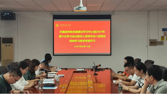 6月12日下午,学院召开党委理论学习中心组2025年第六次学习暨深入贯彻中央八项规定精神学习教育专题学习。学院领导班子成员、各党支部书记、纪检委员参加会议。会议由党委书记郑娟主持。